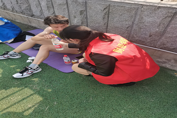 运动会期间,身披红色马甲的入党积极分子忙碌在运动场的各个角落:协助运动员做赛前热身、带领运动员检录、为运动员加油助威、提供饮用水、搀扶运动员下场休息;协助学校工作人员清理比赛场地垃圾、维护观众席秩序等等。贴心的服务提振了每一位运动员的信心,他们在运动场上顽强拼搏、展现青春风采,最终获得女子甲组团体总分第四名、甲组总团体第六名,创下学院近年来校运动会最佳成绩。