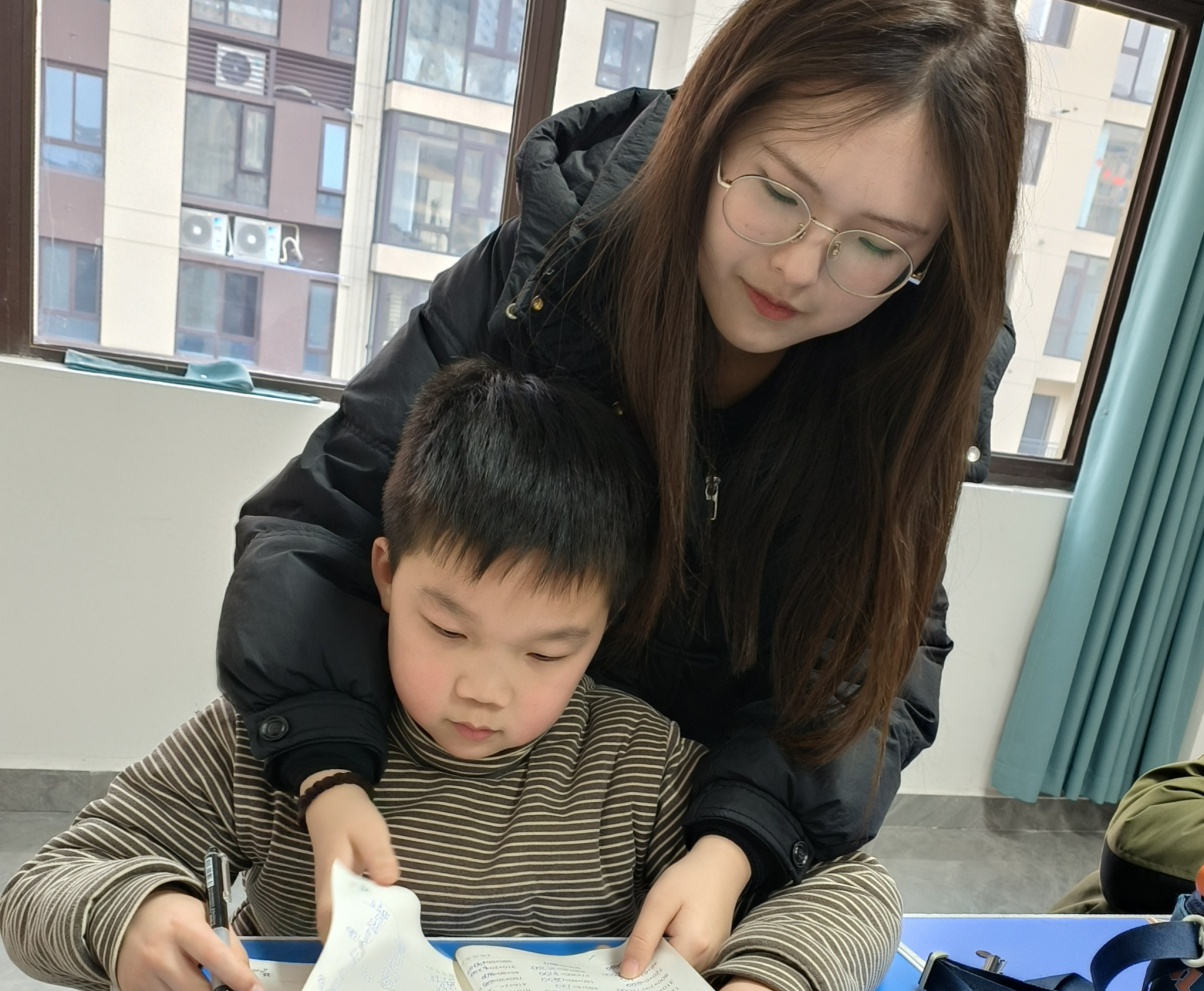 郭子涵加入“小春芽”课堂,以作业辅导为主,辅以文体活动,延伸到剪纸、绘画、书法、科普、安全教育、心理健康教育、红色教育以及趣味比赛等拓展体验实践活动,内容丰富同时责任重大。社区为“看护难”的孩子安排了丰富的学习和娱乐活动。每天下午最后两节课,为学生们安排观看电影或纪录片,涉及爱国,动画,自然,历史人文,他们沉浸在电影的情节中时,他们的脸上洋溢着开心的表情,时而大笑,时而哭泣,全神贯注,仿佛置身于电影的世界之中;春节将至,社区安排同学们进行一次春联书法趣味活动。书法老师给学生们讲述书法的写字规则,正确的毛笔握姿,书法的起源和发展历程,毛笔的起势顿笔回笔等技巧,我看了也受益匪浅;此外还有跳操,手势舞蹈,绘画,进行消防演练,安全教育,拔河比赛阅读课外书籍等。