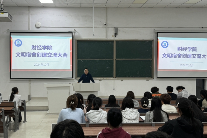 为进一步提升学生宿舍建设水平和育人质量,优化学习生活环境,提高宿舍安全意识,10月17日,财经学院在致知楼A111召开文明宿舍创建交流大会。学院党委副书记、纪委书记耿广汉,专职辅导员丁雨妍出席,学院全体生活委员、2024级寝室长参加。