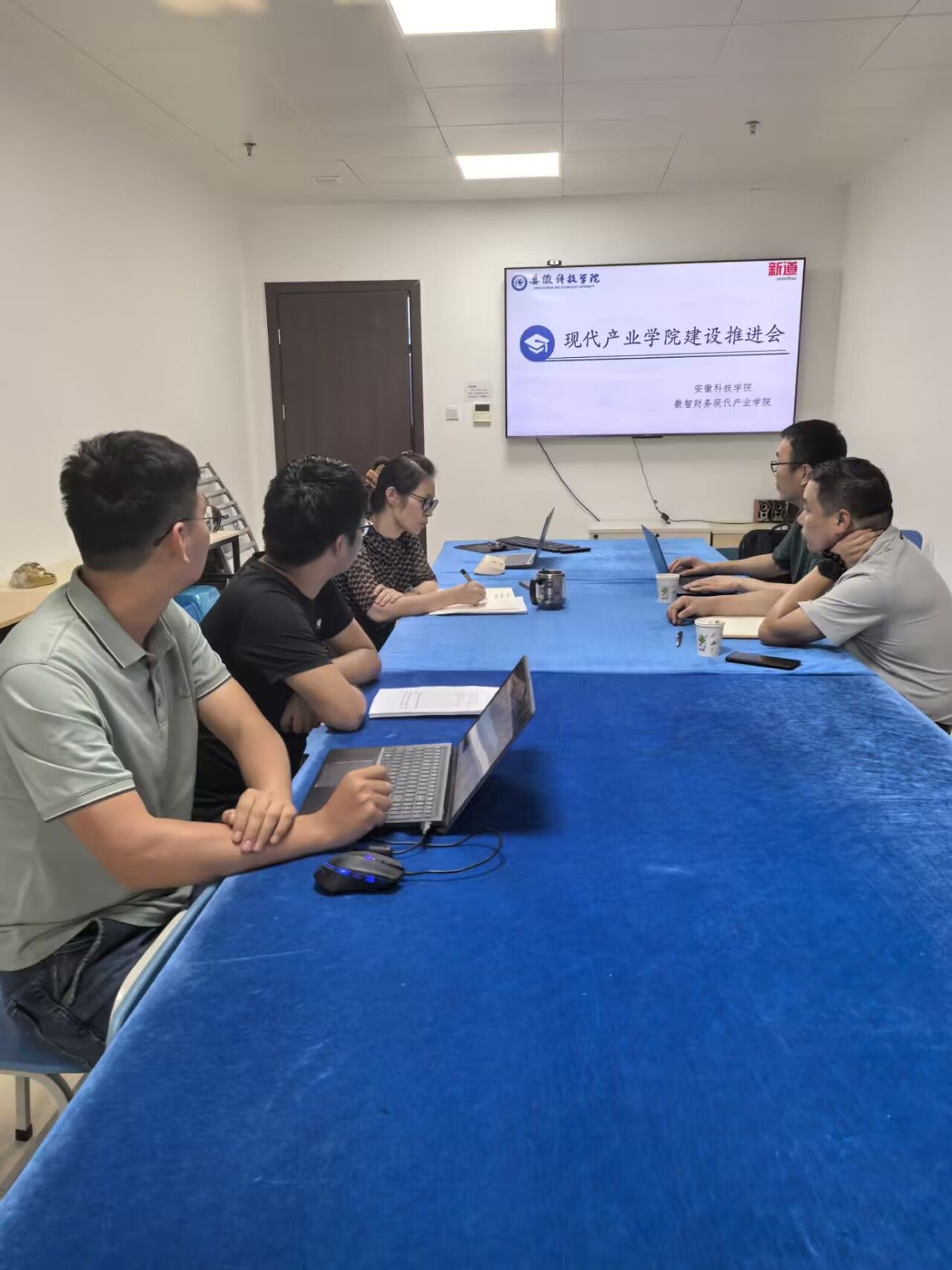 9月5日,为推进现代产业学院建设,WG官方网站数智财务现代产业学院在西辅楼212召开项目建设推进会,财经学院院长郝世绵、新道科技股份有限公司总监康阿朋出席会议,实验室主任岳文忠、现代产业学院负责人徐兰香及其他团队成员参加会议。