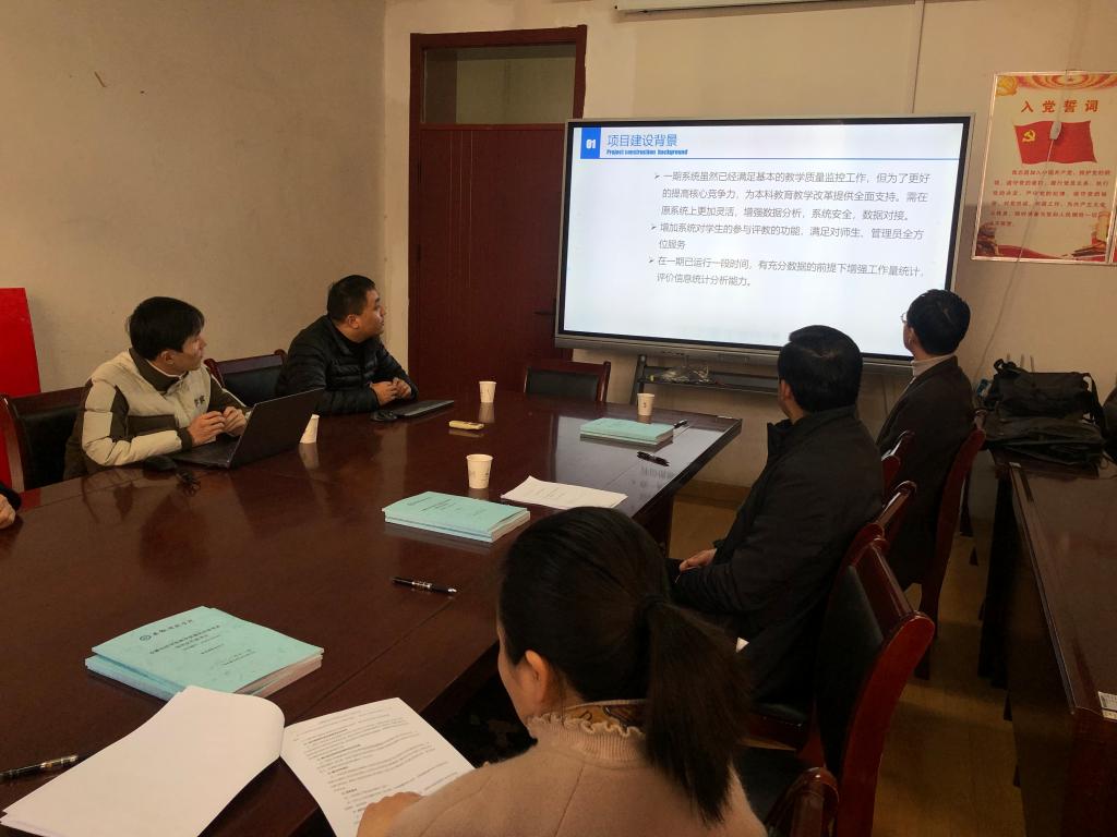2021年12月2日下午,督导考核办公室在教务处会议室组织开展WG官方网站教学质量监控管理系统优化升级项目验收工作。参加验收会议的有教务处、财务处、网络与信息技术中心、国有资产管理处、督导考核办公室和项目实施方的相关技术人员,验收会由督导考核办公室主任程斌主持。