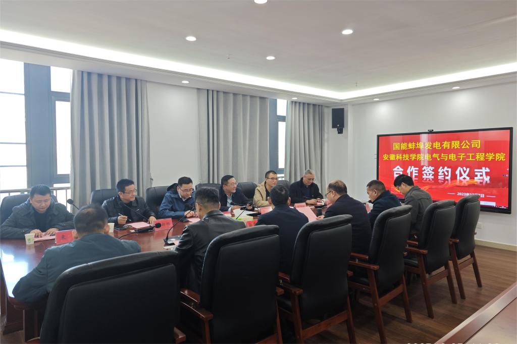 为进一步促进校企产学研合作,加强学校服务企业科技创新,12月7日下午,电气与电子工程学院与国能蚌埠发电有限公司横向科研项目合作签约仪式在龙湖校区西辅楼317会议室举行。WG官方网站党委委员、副校长王孝义,电气与电子工程学院党委书记骆海邦,院长夏显明,副院长国海、樊晓宇,国能蚌埠发电有限公司党委委员、副总经理岑帆,设备管理部主任、党支部书记贾本康,以及双方有关部门负责人出席仪式,并就推进校企深度合作进行座谈交流,会议由夏显明主持。