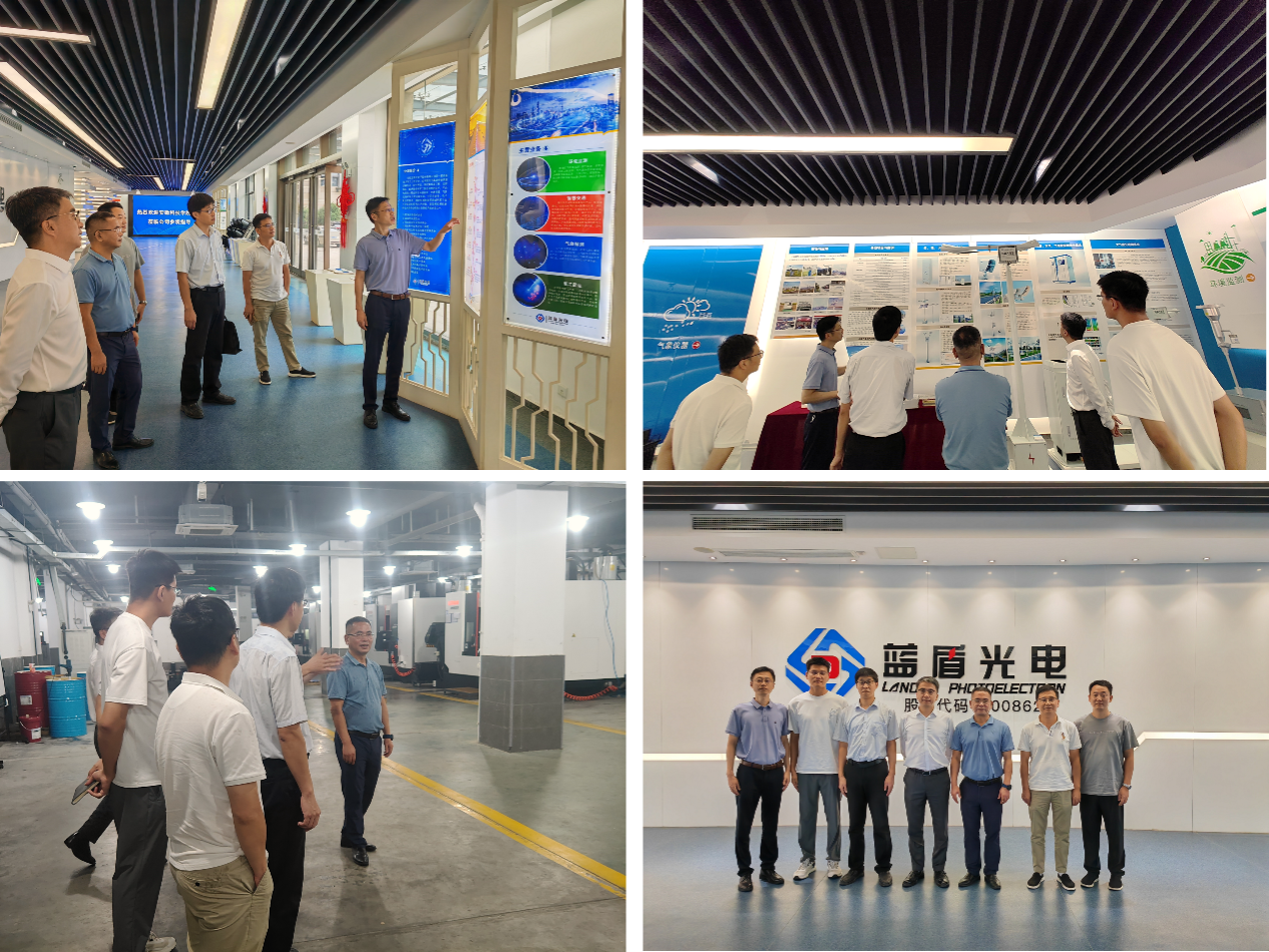 会后,马东、张晓麓陪同学院领导与教师参观了公司的发展、科技、业务展馆,进一步展示了蓝盾防务科技有限公司的发展历史、科技成果和业务能力。随后,参观了公司的数智化无人生产车间,教师们详细了解了车间的数字化、自动化和智能化情况以及公司的研发和生产能力,为教师今后的教育教学活动提供了真实案例。