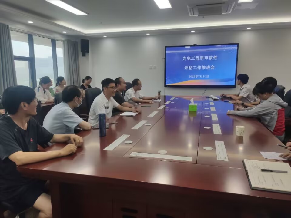 为高效推进光电信息科学与工程专业专业认证和教育教学审核评估工作,光电工程系于7月14日下午在西辅楼416室召开了专业认证研讨会暨教育教学审核评估推进会。会议由电气与电子工程学院副院长樊晓宇博士主持,学院院长夏显明教授受邀到会指导,光电系全体教职工参加了本次会议。