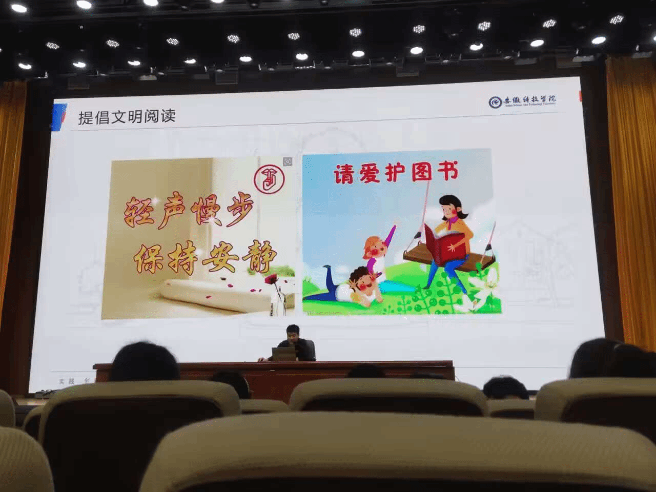 蒋亚鸿首先向同学们介绍了图书馆基本信息、图书馆的类型以及校图书馆的简介。他强调读书能明德致知,提升自我。随后蒋亚鸿向大家详细介绍了图书馆主要藏书类型以及图书馆相关借阅制度和借阅检索方法。让大家对本校图书馆有了更深入的认识。最后蒋亚鸿鼓励同学们利用好图书馆资源,提倡同学们爱护图书,遵守图书馆相关规定,文明阅读。