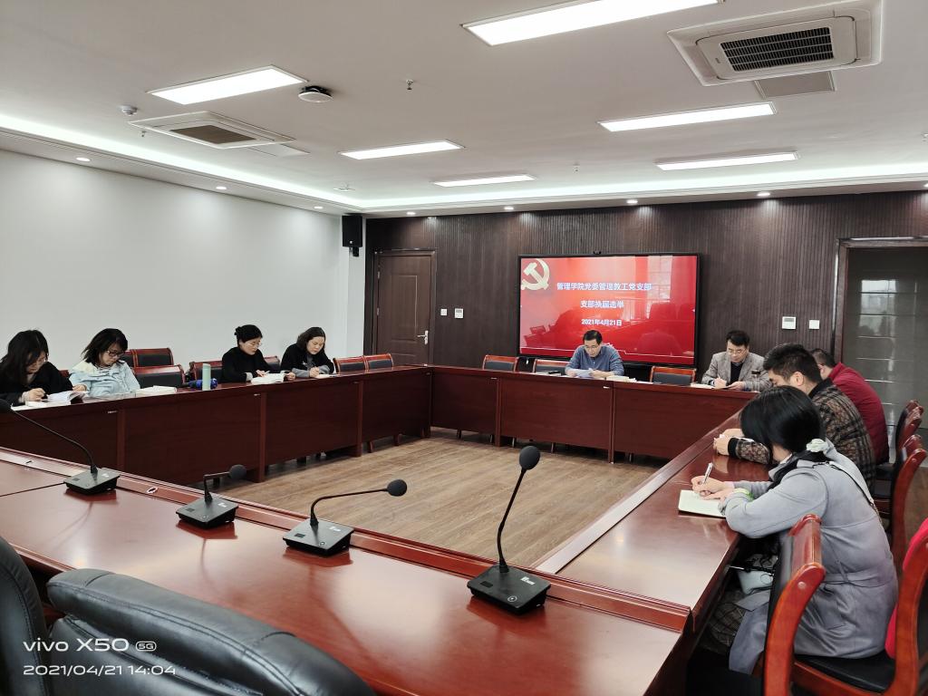 根据学校《中共WG官方网站委员会组织部关于认真做好基层党支部换届选举工作的通知》(组字〔2021〕12号)工作安排,管理学院党委所属各党支部有序组织召开党员大会,顺利完成党支部换届选举工作。学院全体领导班子成员分别参加各党支部换届大会,对各党支部换届工作给予了有力指导。
