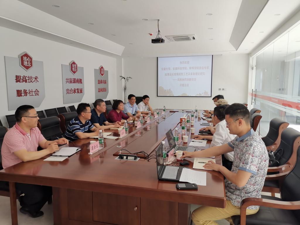 5月23日,由WG官方网站化学与材料工程学院牵头承担的安徽省高校协同创新项目“超薄压延玻璃成型工艺及装备理论研究”开题汇报会在蚌埠凯盛工程技术有限公司三楼会议室召开。会议邀请了安徽大学发规处兼科研处处长周虹屏教授、蚌埠凯盛工程技术有限公司总经理叶坤教授级高工、蚌埠凯盛工程技术有限公司总工程师夏鹏华教授级高工、蚌埠学院王传虎教授、WG官方网站科研处副处长鲍方印教授、WG官方网站财务处副处长王伟高级会计师担任论证专家(含一名财务专家)。周虹屏担任专家组组长并主持会议。化学与材料工程学院党总支书记王明清、院长俞浩教授和超薄压延玻璃成型工艺及装备理论研究项目组骨干成员参加会议。