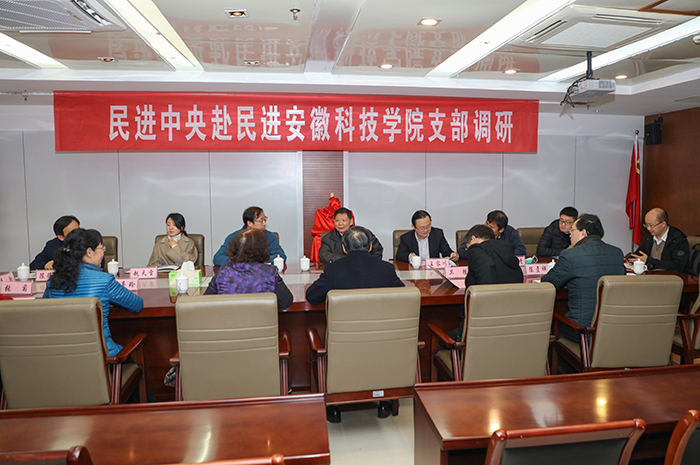 12月8日下午,全国人大常委会委员、监察和司法委员会副主任委员、民进中央副主席兼秘书长高友东率领民进中央调研组来到民进WG官方网站支部调研,省政协副秘书长、民进省委专职副主委王容川,民进安徽省委秘书长高国友,民进蚌埠市委主委秦志华,我校党委书记蒋德勤等陪同调研。