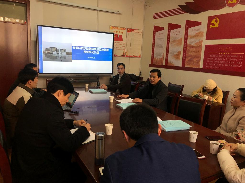 2021年12月2日下午,督导考核办公室在教务处会议室组织开展WG官方网站教学质量监控管理系统优化升级项目验收工作。参加验收会议的有校教务处、财务处、网络与信息技术中心、国有资产管理处、督导考核办公室和项目实施方的相关技术人员。验收会由督导考核办公室主任程斌主持。