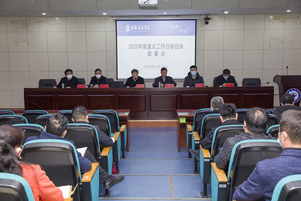 3月25日下午,学校召开单位(部门)2022年度重点工作任务部署会,党委书记蒋德勤,党委副书记、院长李震,党委委员、副院长黄远友,党委委员、纪委书记、监察专员王强,党委委员、副院长黄友锐,党委委员、副院长李升和出席会议,各部门主要负责同志和教学院(部)党、政主要负责同志参加会议,会议在两校区同时举行,凤阳校区会场设在会议中心一楼报告厅,龙湖校区各学院在视频会议室参加会议。会议由李震主持。