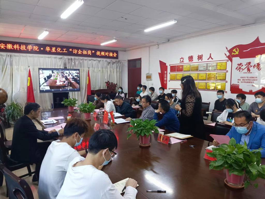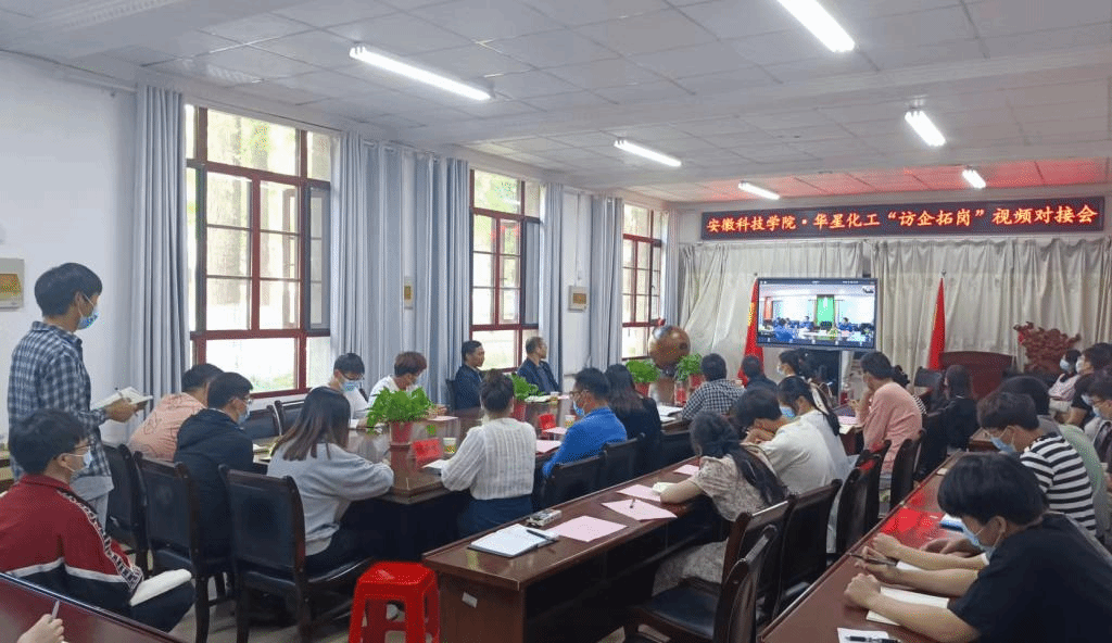为贯彻落实教育部、省委省政府关于高校毕业生就业工作的决策部署,实现人才培养与就业岗位深度对接,助力毕业生疫情防控常态化背景下高质量就业,5月3日, 农学院在学院会议室举办“访企拓岗”视频对接会。校党委副书记、院长李震出席,招生与就业工作处副处长何晓冬,农学院党政领导、植物保护系毕亚玲等教师代表和毕业生代表参加会议,参会企业安徽华星化工有限公司党委书记、总经理颜泽彬,常务副总经理李文明以及相关职能部门负责人、就职于华星化工的我校校友代表等在和县、合肥等地视频出席会议。