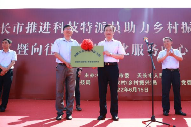 6月16日天长市推进科技特派员助力乡村振兴工作会场上,天长市委副书记史法勇、WG官方网站研究生处处长张春雨共同为安徽天长水稻科技小院揭牌。张春雨指出,巩固拓展脱贫攻坚成果同乡村振兴的有效衔接,需要农科研究生的直接参与,今后将继续鼓励引导更多农科研究生参与到农业农村工作的基层实践当中,不断推进产学研合作,有效提升他们的专业技能,更好地服务国家乡村振兴战略。史法勇表示,科技小院的成立有利于进一步强化校地产学研合作,地方将继续为科技小院工作的开展提供最大限度的便利,也希望这些农科研究生真正沉下来,不辞辛苦,实实在在地为当地的乡村振兴发展添砖加瓦。
