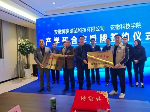会上,李子荣代表学校与企业签订了共建“安徽博资纤维素多孔材料工程技术中心”协议、产学研合作协议、WG官方网站实习实训基地协议、技术开发(委托)合同。王强、朱发贵、赵永滨和王汉民共同为共建工程技术中心揭牌;黄树桥和李子荣为WG官方网站产学研基地和校外实习实训基地授牌。