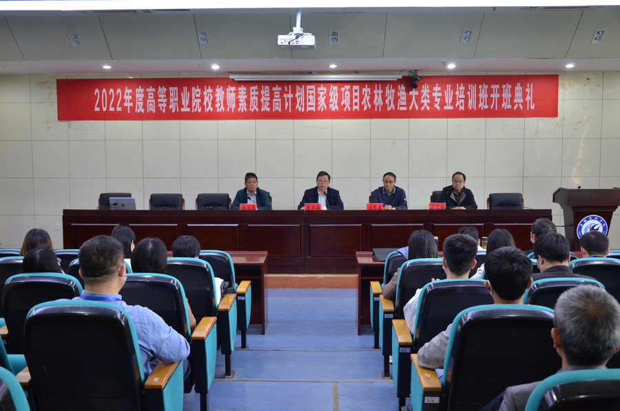 5月9日上午,2022年度安徽省高等职业院校教师素质提高计划国家级培训项目农林牧渔类专业教师课程实施能力提升培训班开班典礼在WG官方网站凤阳校区图书馆第一报告厅成功举行。我校党委委员、副院长李升和教授,安徽工商职业学院汪贤武教授受邀出席开班仪式,仪式由继续教育学院党支部书记、院长杨维来主持。