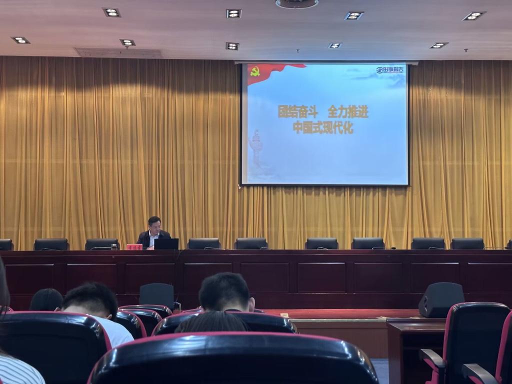 5月24日下午,党委委员、副院长黄远友以“团结奋斗 全力推进中国式现代化”为题,在会议中心二楼报告厅讲授主题教育专题党课。后勤保障部党支部、国有资产管理处党支部党员,部分离退休老同志,农学院部分班级学生共同聆听。