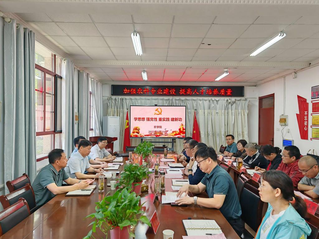 为深入开展学习贯彻习近平新时代中国特色社会主义思想主题教育,了解学校新农科专业建设情况,5月31日上午,校党委书记时伟赴农学院开展以“加强新农科专业建设,提高人才培养质量”为主题的专题调研。教务处、科研处、研究生处负责人陪同调研。农学院班子成员,相关学科、专业、中心负责人参加会议。会议由农学院党委书记何世潮主持。