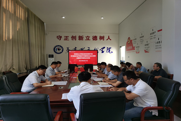 8月31日下午,化学与材料工程学院党委在龙湖校区西附楼317会议室召开处级党员领导干部学习贯彻习近平新时代中国特色社会主义思想主题教育专题民主生活会。校研究生处处长张春雨和校研究生处秘书兰彬到会指导。学院领导班子成员、群众代表和党员代表参加会议,会议由学院党委书记黄树桥主持。