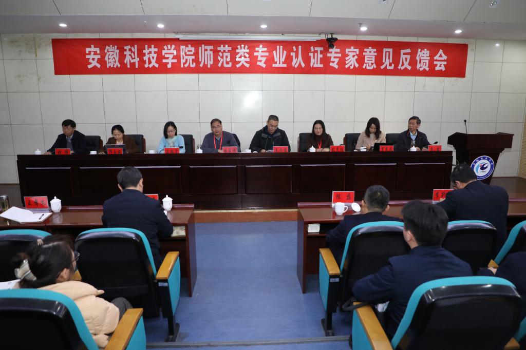 29日上午,专家组意见反馈会在凤阳校区会议中心第一报告厅举行。专家组全体成员,安徽省教育厅高等教育处副处长朱永国,学校领导班子全体成员,职能部门主要负责人,二级学院院长、分管教学副院长,教务处处级干部,外国语学院和人文学院党政领导、系(教研室)和实验室主任,英语和汉语言文学专业负责人、骨干教师参加会议。会议由专家组组长施建祥教授主持。