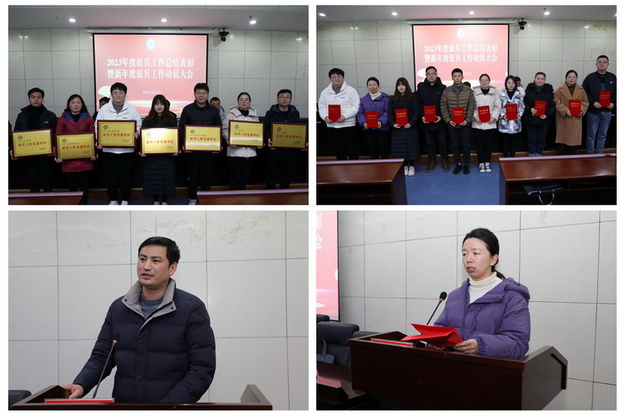 会上,人武部部长余德锋宣读了2023年征兵工作先进集体和先进个人的表彰决定。主席台就坐领导为获奖单位和个人颁奖。黄立义通报了2023年各学院征兵工作完成情况,下达2024年征兵工作任务。食品工程学院党委副书记王广良、电气与电子工程学院辅导员王延丽和退役大学生士兵代表生命与健康科学学院李永凯分别作交流发言。