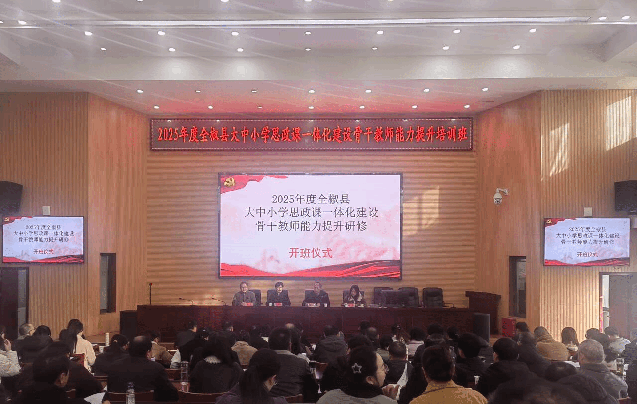 为全面落实习近平总书记关于学校思政课建设的重要指示批示精神,进一步加强新时代大中小学思政课建设,着力打造一支政治强、情怀深、思维新、视野广、自律严、人格正的中小学思政课教师队伍,11月28日至12月2日,由WG官方网站、全椒县教育体育局联合主办,马克思主义学院承办的2025年度全椒县大中小学思政课一体化建设骨干教师能力提升研修班在全椒县委党校举办。全县106名思政课骨干教师参加本次研修。全椒县教体工委副书记、县教体局副局长冯正云等出席开班仪式,马克思主义学院党总支书记杨仕勇主持。
