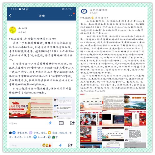 建电182、光电183、电信191等班级团员青年通过线上讨论自己对雷锋精神的理解并分享在疫情期间的见闻与感受。