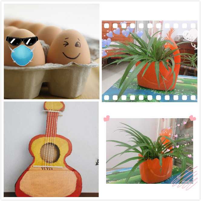 创新劳动提倡学生“放飞思路,创新至上”,活动形式主要是倡导同学们学会旧物新想、变废为宝,利用身边的旧衣物、箱子、盒子、罐子等生活废弃物品,经过一系列创新改造,制作出全新的、价值更高的物品。同学们踊跃参与,积极思考创新。建筑电气与智能化192班徐笑茹将洗衣液瓶子,通过一番精心修剪制作出了形象逼真的夏日吊兰,并作为母亲节礼物送给了妈妈;光电科学与信息技术192班党瑞萍利用旧纸板和绳子制作的精美小吉他,小巧可爱;建筑电气与智能化181班方嘉靖手工DIY鸡蛋,给人以耳目一新的感觉。
