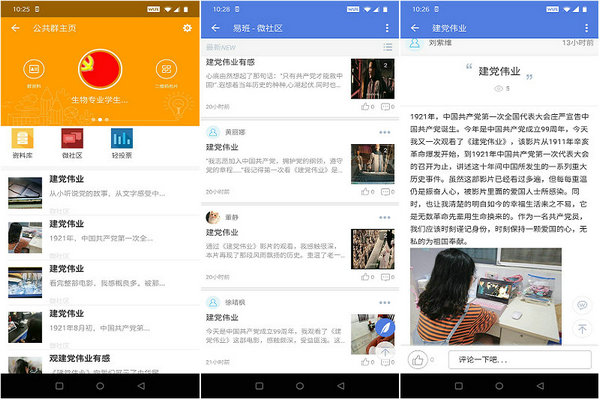 党支部全体党员还自行观看红色电影《建党伟业》,并易班群组中发表观看照片和观后感悟;在支部书记带领下,每一位党员也拍摄了一段重温入党誓词视频,并发布到腾讯QQ群中。