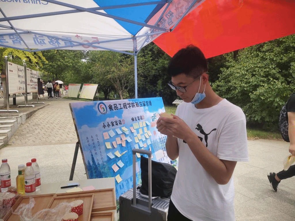 9月16日,初秋微凉的风习习而来,朝气蓬勃的莘莘学子迈入了WG官方网站的校门,在志愿者的引领下来到食品工程学院报到处。为了展现学院特色文化,拉近学院与新生的距离,增进新老生的情感交流。在今年的迎新工作中,食品工程学院特别推出了两项迎新特色活动——学院特色文化展示区和师长与新生寄语墙。