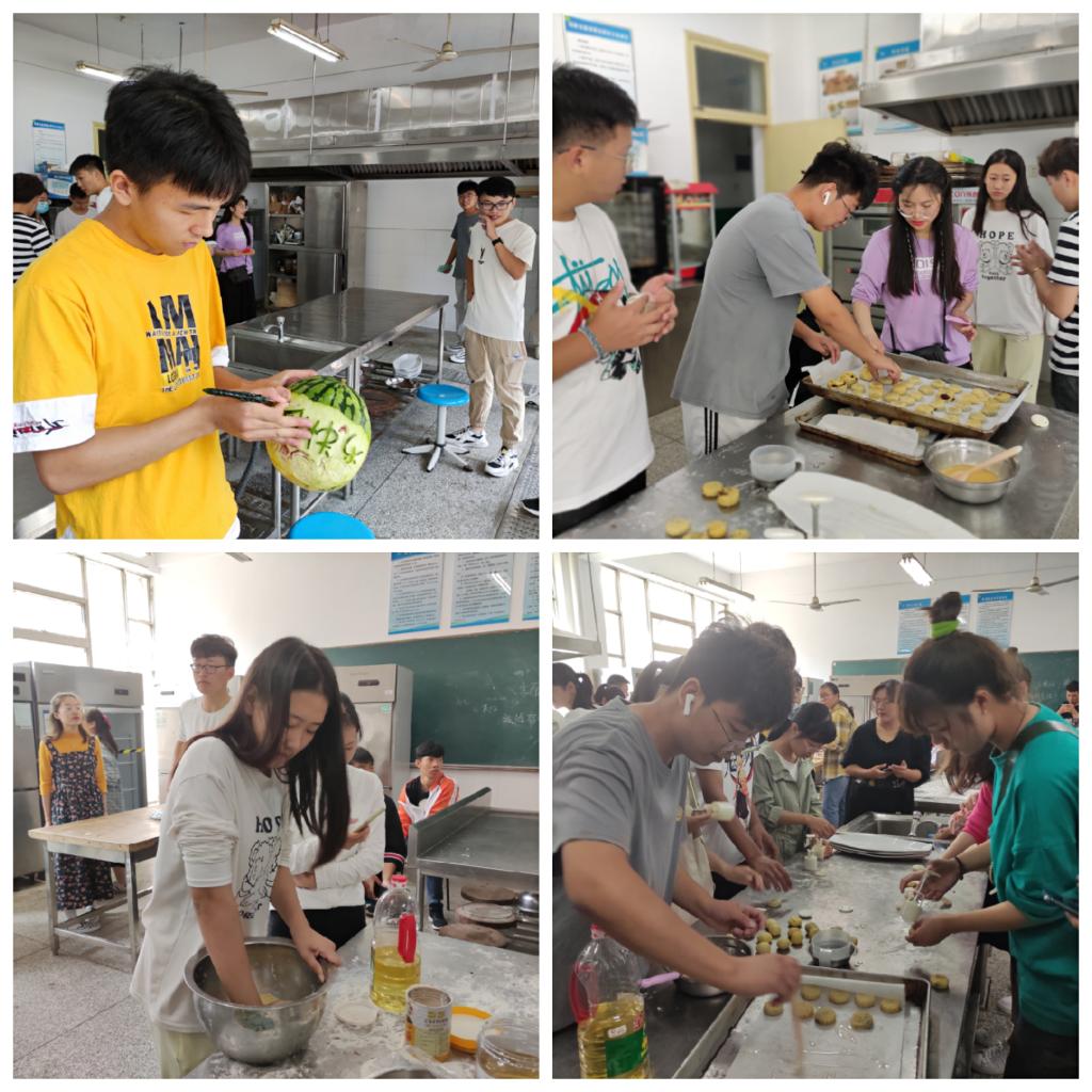 活动伊始,由食为天季原为参加活动的学生介绍了活动内容,向新生讲解了做月饼的各道工序及注意事项,新生在有序分组后,开始了分工合作。活动中,新老生相互帮忙,相互提出意见,涌现了众多“持家小能手”、“厨房小精英”,各种各样的厨艺技巧得到展示。