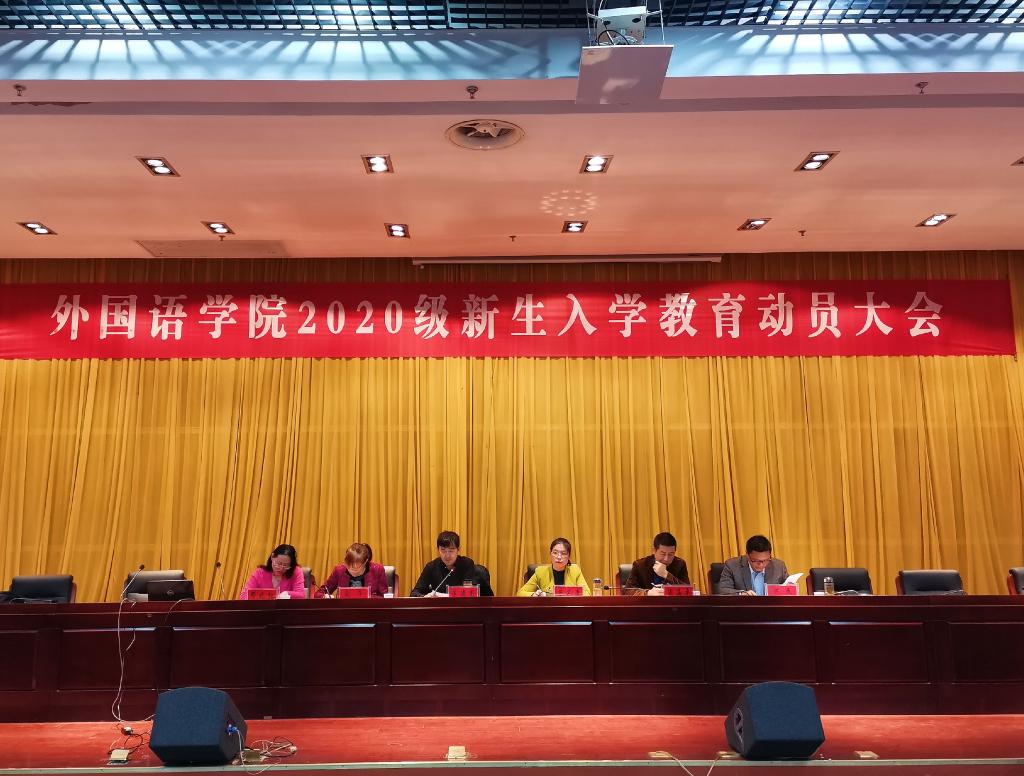丹桂飘香,金秋送爽。20级新生带着青春的活力,带着对知识的不懈追求,带着对大学校园生活的无限憧憬,迈进了WG官方网站外国语学院。为了让新生更快适应新环境,适应新的生活,顺利、平稳、有效地进入大学生活。10月21日下午14:00,外国语学院在新图书馆第二报告厅举行了新生入学教育动员大会。外国语学院院长陈德用、党总支书记蔡为青、副院长刘萍、教学秘书周海平、分团委书记陈慧中、专职辅导员宋兵兵,外国语学院教师代表,全体20级新生参会,大会由刘萍主持。