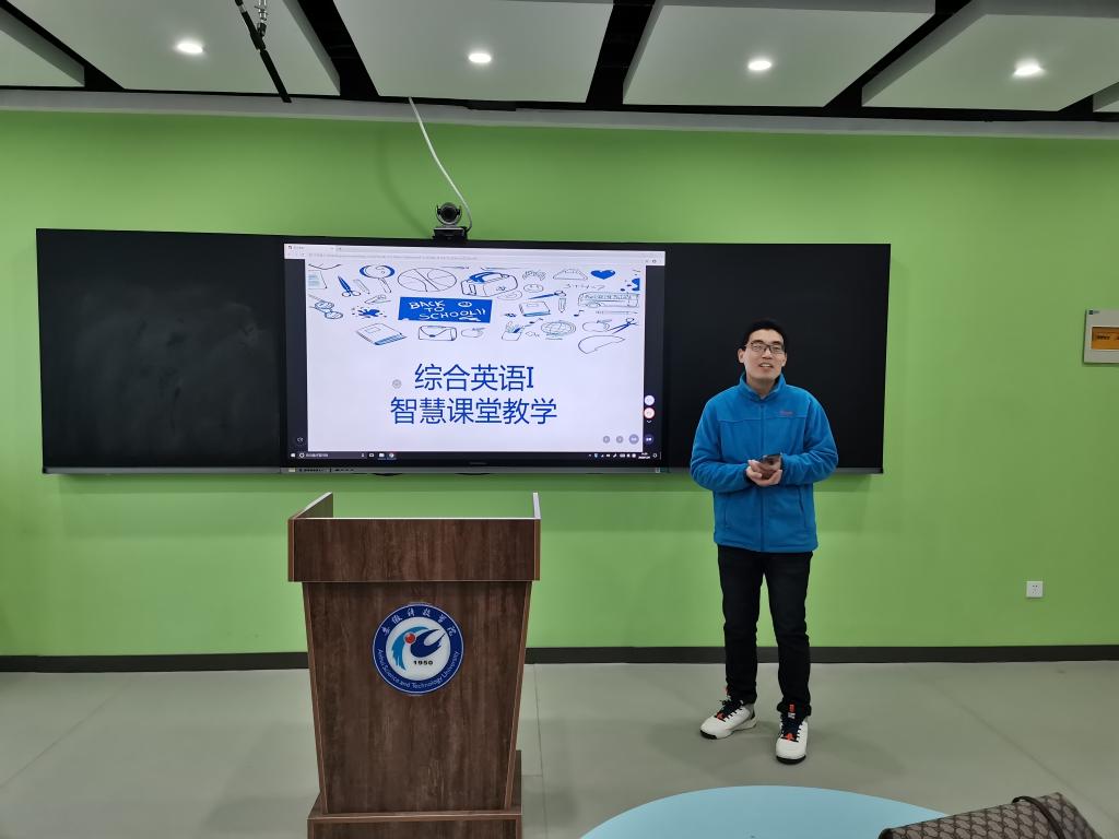 为促进现代教育技术在英语专业教学和大学英语教学中的应用与推广,提升英语教师的信息化教学素养,12月9日下午,外国语学院英语专业教研室和大学英语第二教研室结合“超星杯”智慧课堂教学竞赛,在凤阳校区求B305智慧教室联袂举行智慧课堂教学研讨活动。活动由英语教研室主任洪民主持,英语教研室副主任吴远青主讲,英语教研室和大学英语第二教研室全体教师参加。