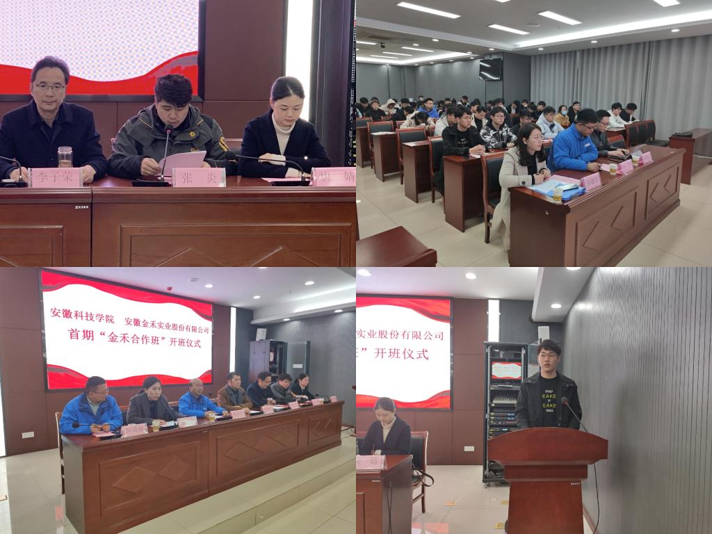 李子荣介绍了“金禾合作班”的育人目标、教学内容安排、管理架构,并就下一步推动双方成立产业学院提出了设想和建议。张炎宣读了《关于成立WG官方网站 安徽金禾实业股份有限公司首期“金禾合作班”的通知》文件,金禾班企方兼职班主任燕岩、院方兼职班主任薛璐莎和学生代表顾涛依次发言。