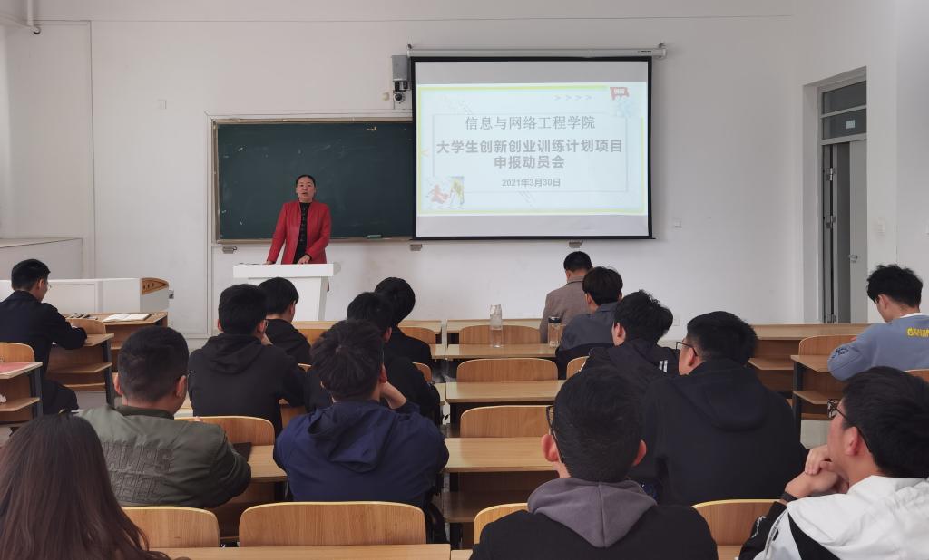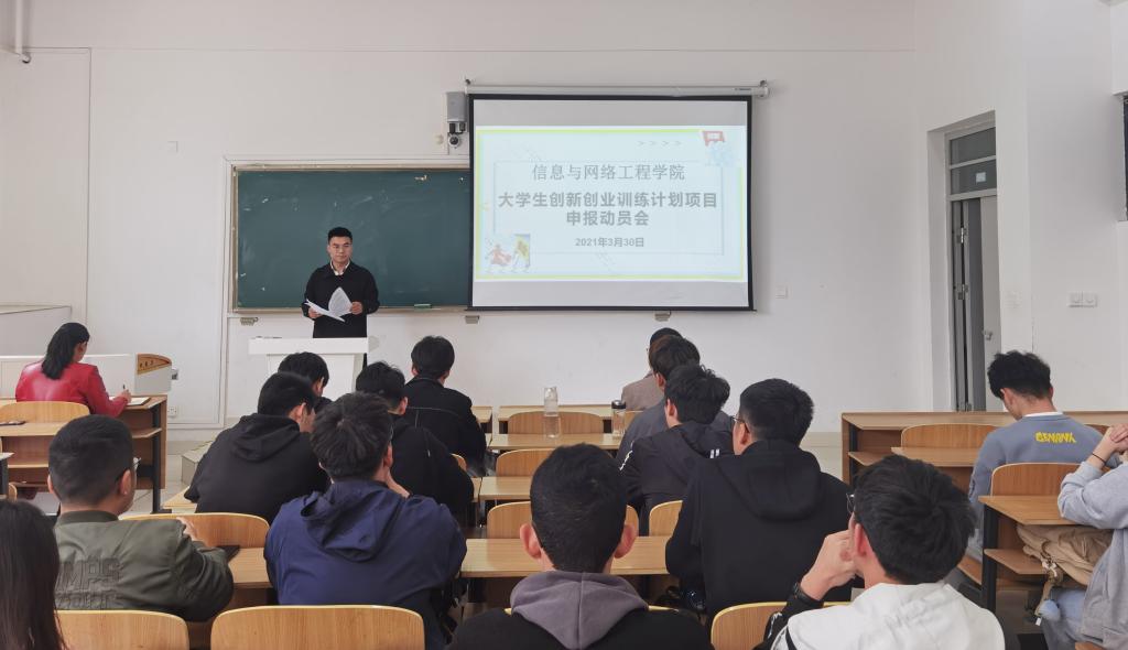 为推动学院创新创业教育工作的开展,促进大学生创新创业能力提高,3月30日,信息与网络工程学院在致知楼C103召开2021年大学生创新创业训练计划项目申报动员会,学院党委副书记韦乃学、副院长曹浩、专职辅导员李军成出席本次会议。19级,20级各班科创委员及学生会科创部全体成员参加了会议,会议由韦乃学主持。