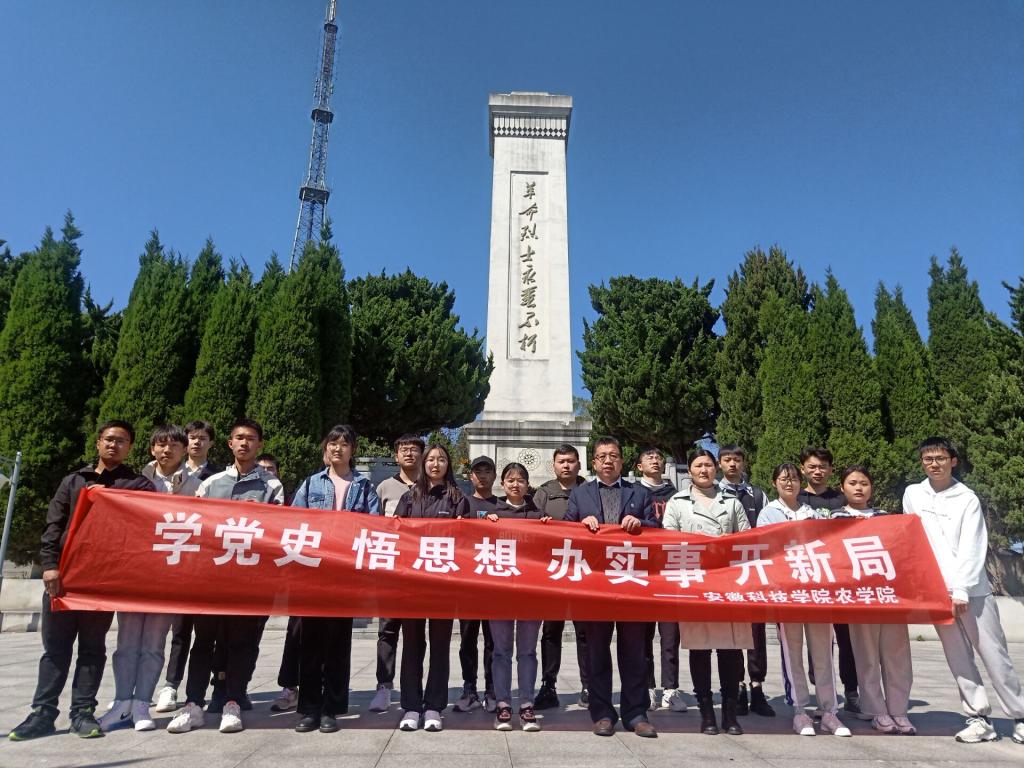 不忘烈士抛忠骨,民族复兴中国梦!为缅怀革命先烈,培养家国情怀,弘扬爱国主义精神,传承红色基因,加强党史学习教育,4月4日清明节,农学院开展清明祭扫主题教育活动。在农学院党委书记何世潮,正科级组织员、团委书记郑玉莲的带领下,农学院学生会、金禾创新创业中心以及学生社团联合会三大学生组织学生干部列队前往凤阳县烈士陵园进行祭扫活动。