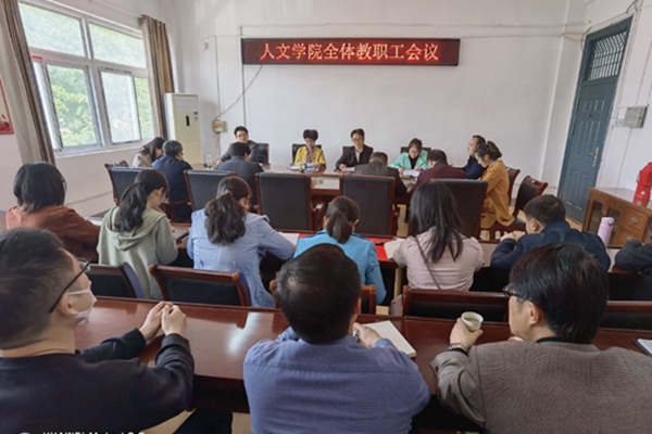 4月28日下午,人文学院在学院会议室召开全体教职工会议,总结、部署学院各项工作。人文学院党委书记杜士凤、副院长李晓东、副院长牛永辉、副书记李沙娜及全体教职工参加会议。会议由杜士凤主持。