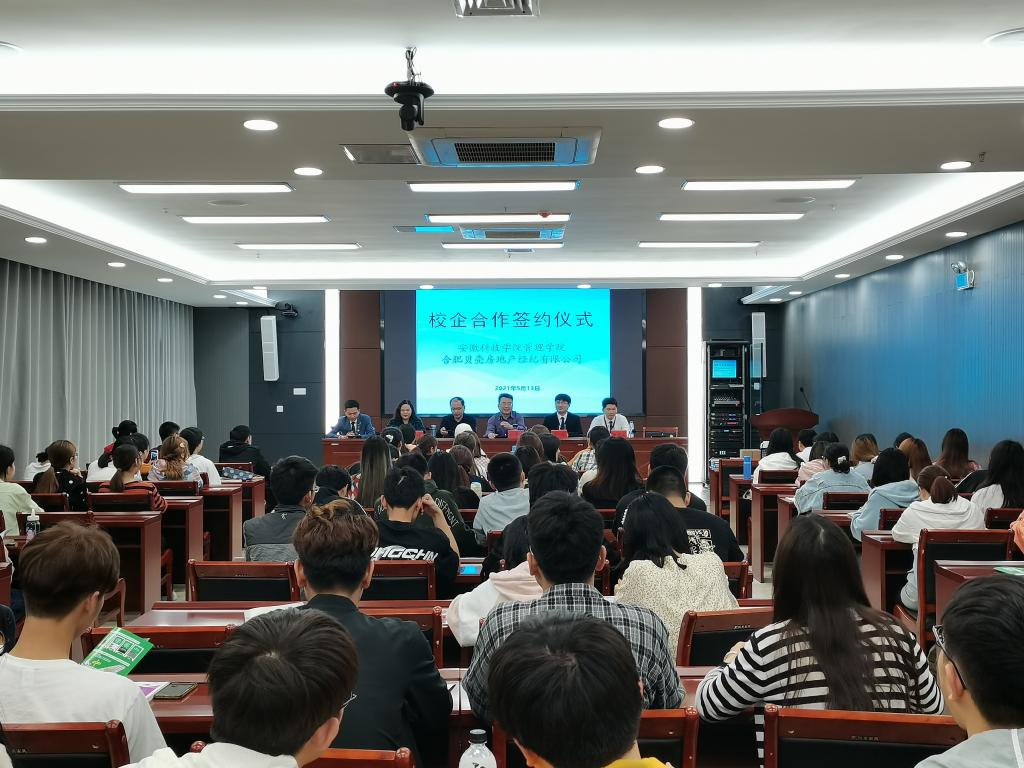 赵伟峰与王浩共同签署了《WG官方网站与合肥贝壳房地产经纪有限公司校企合作协议书》,举行了人才培养合作班授牌仪式。
