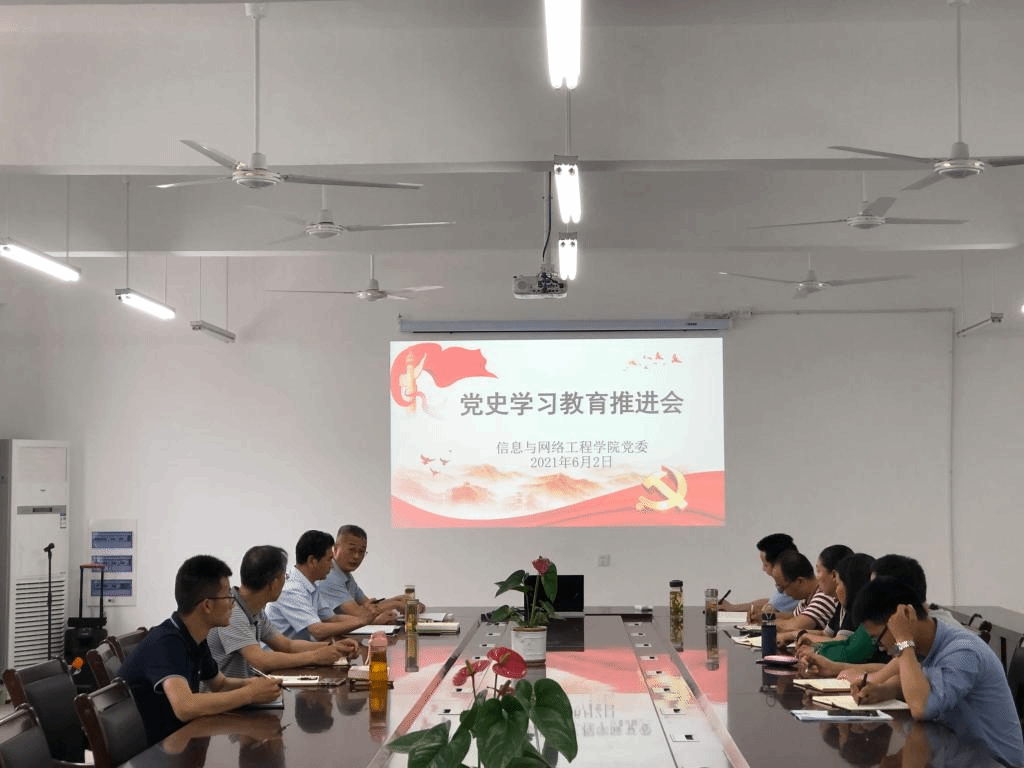 会议对《信息与网络工程学院党史学习教育实施方案》《信息与网络工程学院“我为群众办实事”实践活动实施方案》等工作阶段性实施进展情况进行了梳理总结,对当前存在的问题进行分析思考,并结合学校党史学习教育最新部署要求,统筹安排布置了下一步重点任务。