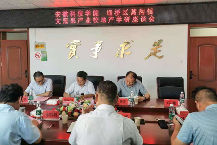 座谈会上,双方分别介绍了蒿沟镇和学校基本情况。重点以促进乡村振兴为主题,围绕科研赋能农业多功能发展,探讨以“立足蒿沟、面向三农、辐射皖北”为宗旨,以科技创新、成果转化、人才培养为重要载体,全面促进蒿沟镇农业及农业一二三产融合发展模式。蒿沟镇希望引进涉农板块的技术、管理资源,建立以高校为支撑、政府为导向、市场为主体的乡村振兴“蒿沟样板”,为蒿沟镇现代农业、质量农业、智慧农业的高质量发展提供全方位支撑,助力实现蒿沟镇绿色健康可持续发展。