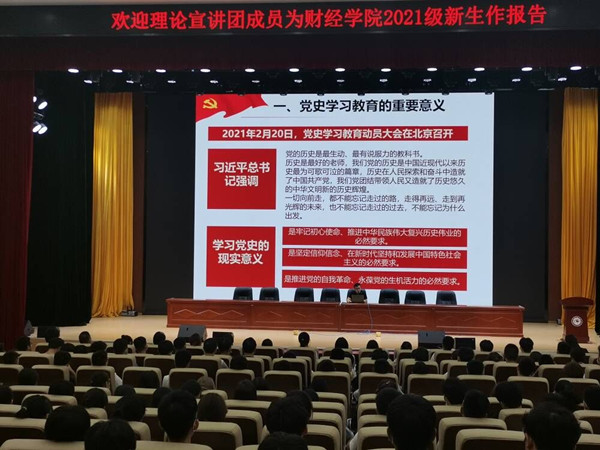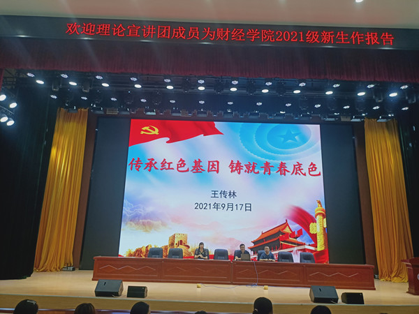 为加强新生理想信念教育,激发爱党爱国热情,9月17日上午,财经学院邀请校辅导员理论宣讲团成员、生命与健康科学学院党政办公室主任王传林为2021级新生作以“传承红色基因,铸就青春底色”为主题的理论宣讲。院党委副书记耿广汉、全体新生辅导员及2021级新生全程参与,聆听了讲座。讲座由院团委书记薛枫主持。