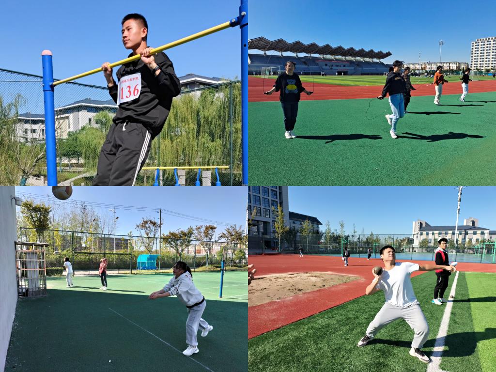 本届运动会包含竞赛类项目和趣味类项目,上午9点,学院田径类项目比赛准时开始。比赛包括100米、200米、400米、1500米、3000米、5000米、铅球、跳高、跳远和三级跳等项目;下午1点,学院趣味类比赛如期举行,比赛包括篮球三分线定点投篮、仰卧起坐、跳绳、引体向上、排球对墙垫球、足球颠球等项目,吸引了200多名学生参加比赛。