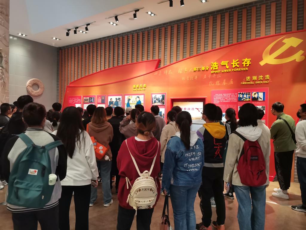 沈浩同志先进事迹陈列馆中,在讲解员的带领下,全体党员实地观看了沈浩同志在小岗村工作、生活留下的实物资料和图片文字,深刻领悟了沈浩同志始终以党和人民的事业为重,勤奋务实、干事创业、勇于创新、无私奉献的时代精神,三过家门而不入。为留下沈浩同志,小岗村民三次按下红手印,更是深深感动了大家。在陈列馆前,党员们面对鲜红的党旗,紧握起右拳,重温入党誓词,时刻牢记党的宗旨,牢记自己在党旗下的庄严宣誓,用实际行动践行这一光荣的诺言。