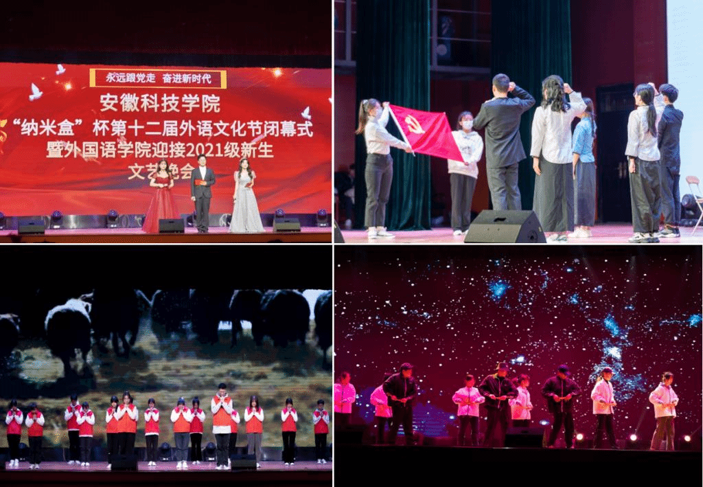 闭幕式后,各位领导和师生共同欣赏了外国语学院2021年迎新晚会,晚会共分为“不忘初心,岁月峥嵘”“栉风沐雨 ,砥砺前行”“以梦为马,不负韶华”“青春华章,展翅翱翔”四个篇章,节目精彩纷呈,获得师生阵阵掌声。(特约通讯员:宋兵兵 审核:张海亮 编辑:张威)