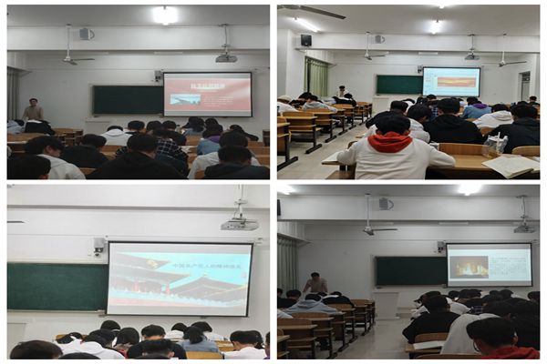 宣讲团成员,高鹏、程琛和李叶晗三位学生党员,在各班级集中重点宣讲了革命精神内涵,详细介绍了红船精神、大别山精神、井冈山精神、苏区精神、长征精神、抗联精神、抗战精神、延安精神、抗美援朝精神、“两弹一星”精神、抗疫精神、女排精神、特区精神、辽宁精神等18种革命精神。