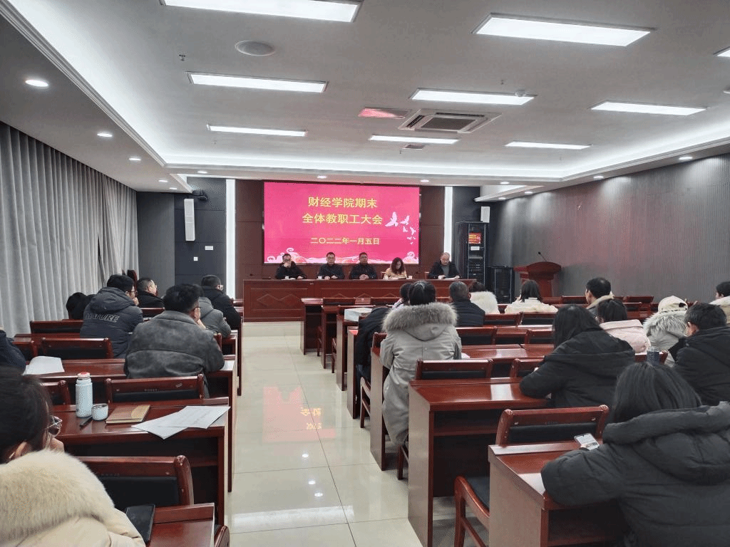 1月5日,财经学院在龙湖校区西辅楼111会议室召开全体教职工会议,部署本学期末及下学期开学初工作,明确2022年工作重点和努力方向。学院党政领导及全体教职工参加会议,会议由学院党委副书记、纪委书记耿广汉主持。