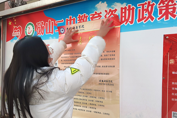 为加强我校与优质生源学校的沟通交流,增进考生对我校的了解,提高WG官方网站的知名度和社会认可度,增进在校生与高中母校的感情,培养大学生的社会实践能力。1月16日下午,机械工程学院工业设计211班段梦茜、外语学院翻译213班刘荣荣两位学子赴砀山县第二中学开展“我回母校报喜讯”寒假专项社会实践活动。