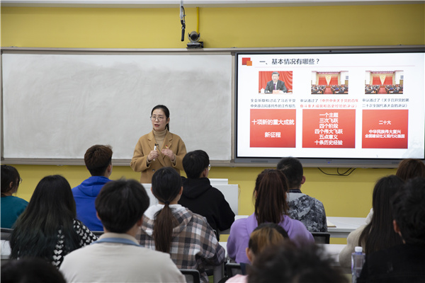 为深入学习贯彻党的十九届六中全会精神,高质量、高标准地推进党史学习教育和学院结对共建走深走实。3月9日下午,生命与健康科学学院特邀马克思主义学院赵仁青副教授以《不忘初心、牢记使命——学习践行党的十九届六中全会精神》为题,在求知楼B307为生命与健康科学学院生物类专业学生党支部、药学类专业学生党支部师生党员讲授了一场内涵深刻、内容丰富的专题党课。宣讲会由生命与健康科学学院正科级辅导员、正科级组织员邓艳萍主持。