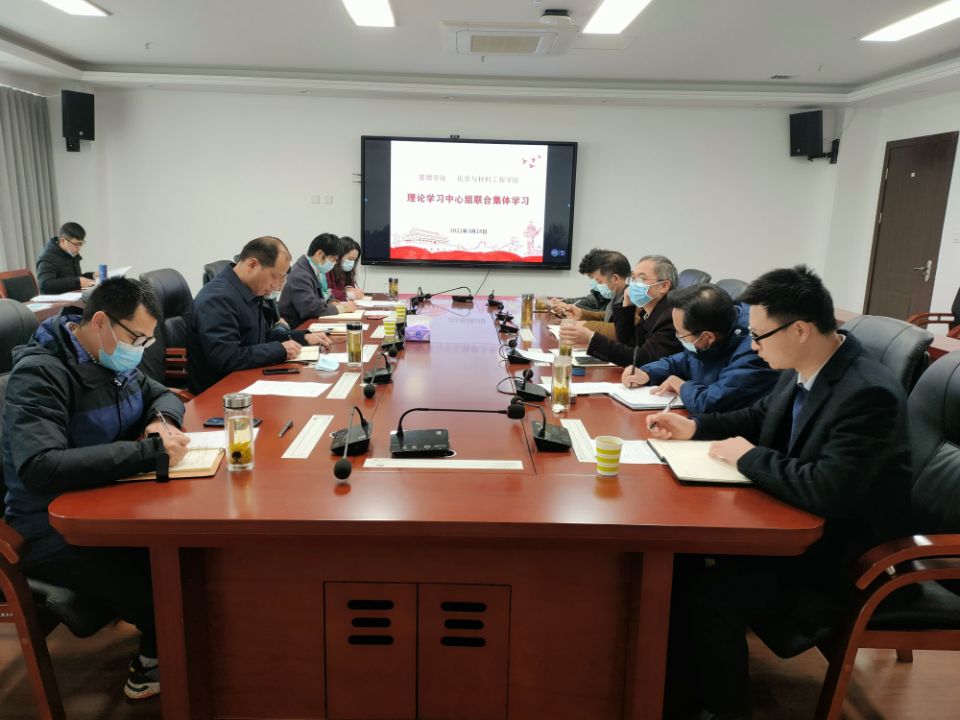 为创新理论学习方式,提高学习效果,推动学院工作,3月18日上午,管理学院和化学与材料工程学院在西附楼416会议室开展了理论学习中心组联合集体学习活动,学习主要内容为习近平总书记在两会期间发表的重要讲话、两会主要精神和学校大学更名五年行动计划方案,学习方式为“领学+研讨”相结合。管理学院和化学与材料工程学院党委理论学习中心组全体成员参加了联组学习,学习会由管理学院党委书记丁景良主持。
