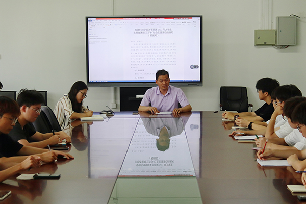 最后谭博文仔细解读了《WG官方网站关于开展2022年大学生志愿者暑期“三下乡”社会实践活动的通知(预通知)》文件,并针对各团支部的对于团队建立、实践形式、材料撰写等问题做了详细的解答,并对材料报送提出了相关要求。(特约通讯员:谭博文 审核:张严政 编辑:张威)