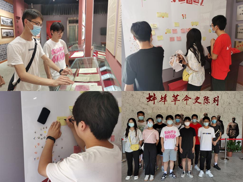 为了促进青年学生学史明理、学史增信、学史崇德、学史力行。7月12日下午,信息与网络工程学院网络工程201班、202班的10名同学组成的“社会主义添砖加瓦队”社会实践团队,共同前往蚌埠市革命历史陈列馆开展“党旗引领青春,历史照亮未来”党史学习教育。