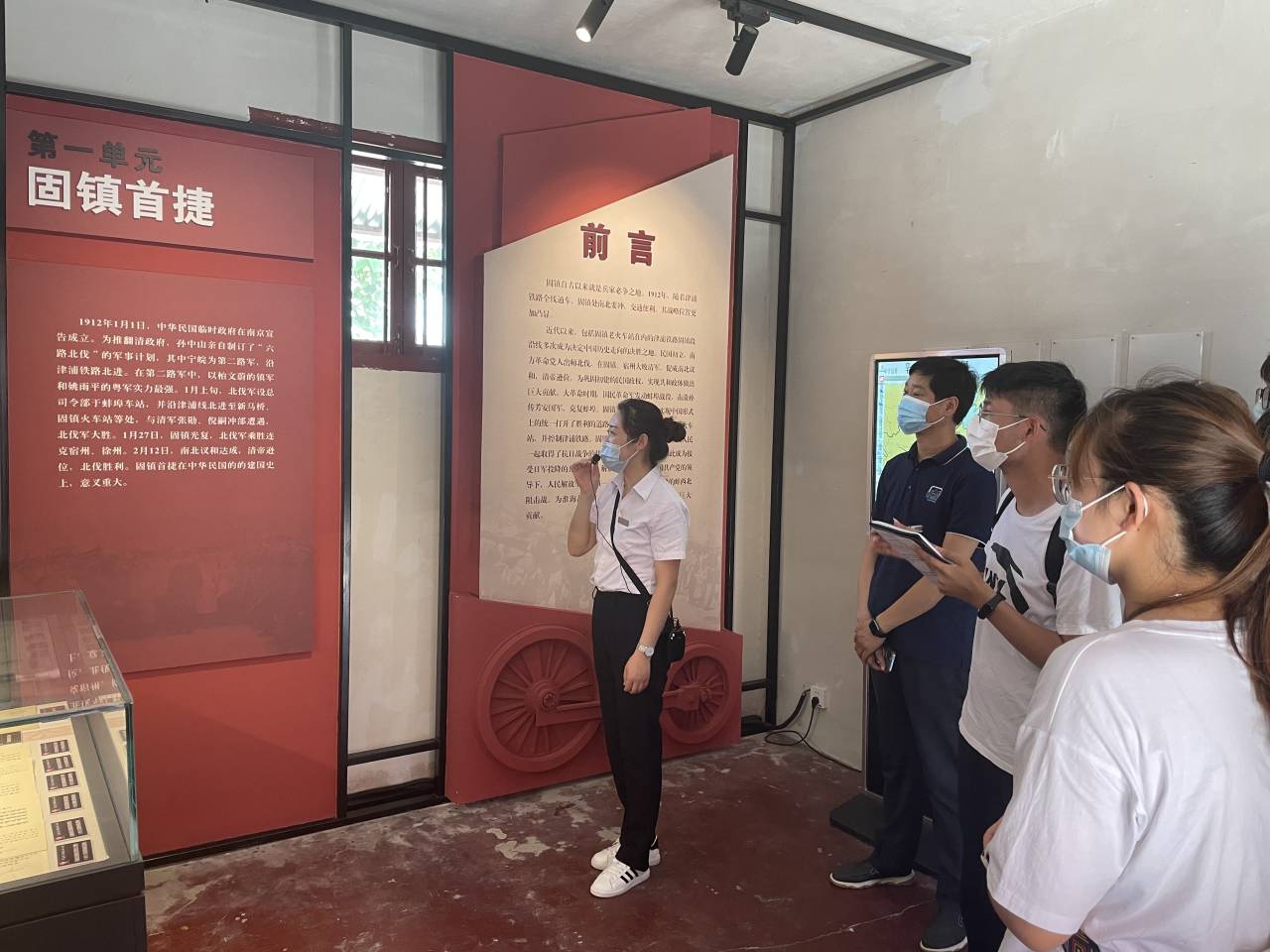 团队成员首先来到固镇县津浦铁路遗址,先后参观了津浦铁路展示馆、固镇县抗战纪念馆、徐介藩将军生平事迹展等地。在解说员的介绍中,团队成员了解到:随着津浦铁路全线通车,固镇地处南北要冲,交通便利。自近代以来,包括固镇老火车站在内的津浦铁路固镇段沿线多次成为决定中国历史走向的决胜之地。在抗战时期,当日军占领固镇老火车站并控制津浦铁路时,固镇人民坚持武装斗争,与全国人民一起取得了抗日战争的伟大胜利。在解放战争时期,在中国共产党的领导下,人民解放军在固镇一带更是成功地实施了艰苦卓绝的蚌西北阻击战,为淮海战役和中国革命的最终胜利作出了贡献。离开纪念馆,团队成员刘石感慨道:“正是这些抗日英雄勇敢无畏,保卫祖国,才有了今天的美好生活。”